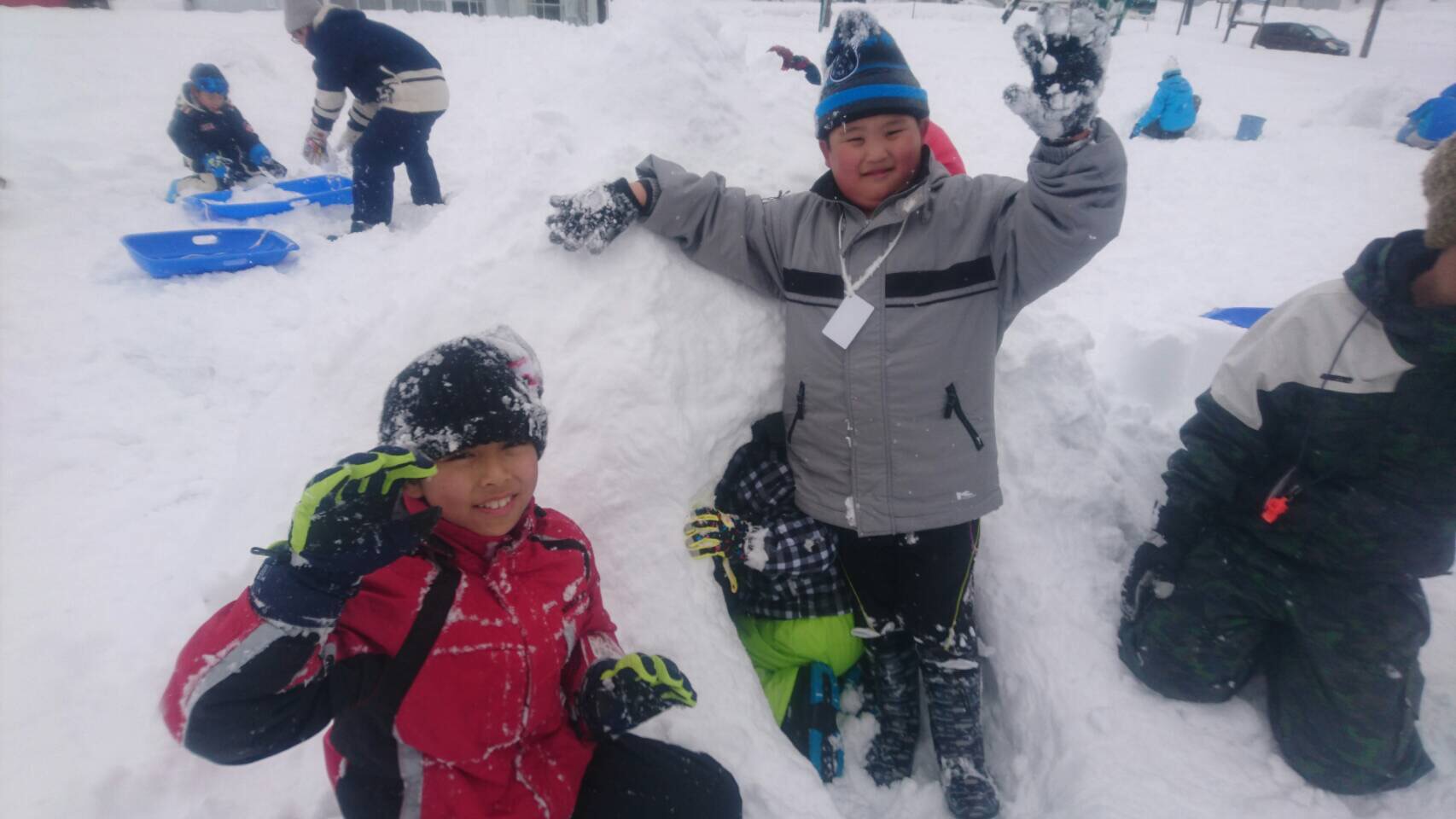雪がたくさん降ったおかげで、雪を集めるのもとっても簡単!